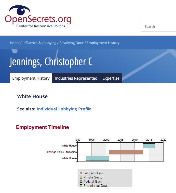 Chris Jennings was allowed access to the White House healthcare reform party "officially" in 2013. But he was involved in the Oval Office discussions before that. He worked in and out of the White House on health reform and his bread and butter was on Capitol Hill and corporations since the 1990's.